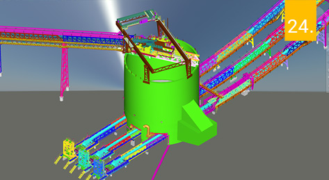 1.Scan to 3D Dumb & Intelligent Modelling to site areas for MRM silo & Conveyor, conveyor, MRM crusher + end conveyors, MRM M-C conveyor, MRM silo top to middrive conveyor, MRM breaker feed conveyor and surge bin, MRM middrive. |