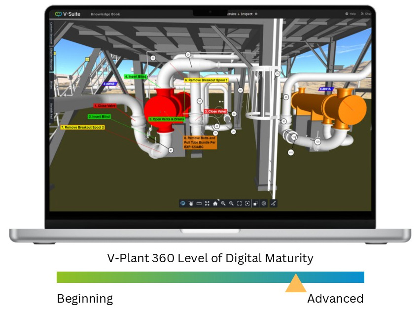 V-plant is an innovative 3D Digital Twin solution designed to optimize industrial operations by unifying disconnected systems, automating compliance tracking, and streamlining turnaround planning. By consolidating data from platforms like SAP, GE APM, and Maximo into single environment, V-Plant enables real-time monitoring, faster audit preparation, and improved inspection planning. With features like what-if scenario planning. V-Plant reduces downtime, minimizes rework, and ensures operational safety-all while keeping assets complaint and audit-ready.